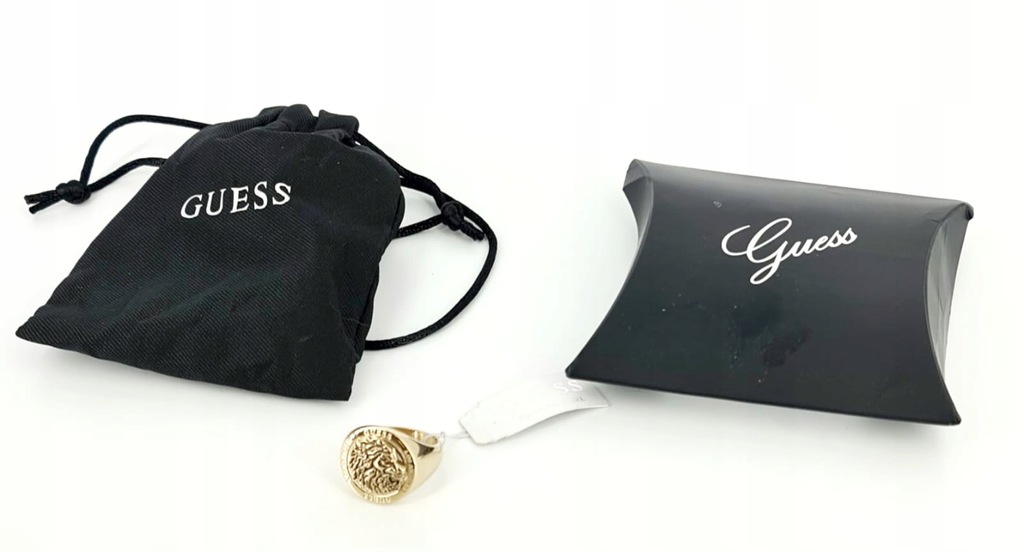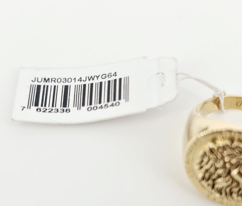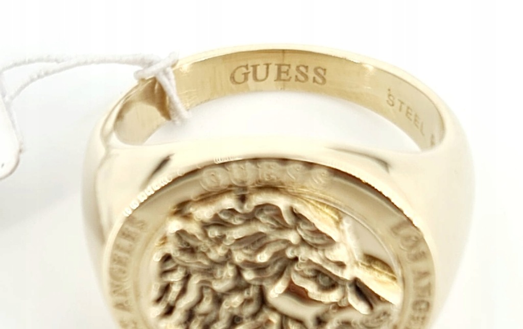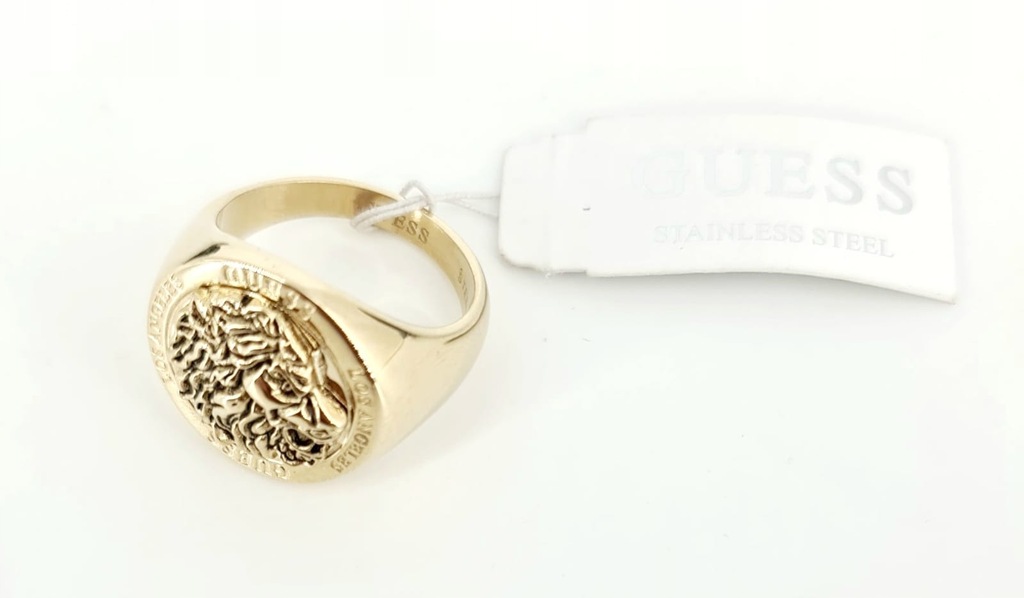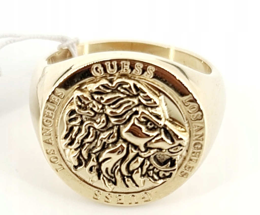 GUESS Kolekcja LION KING. Męski pierścionek ze stali nierdzewnej, złoty,