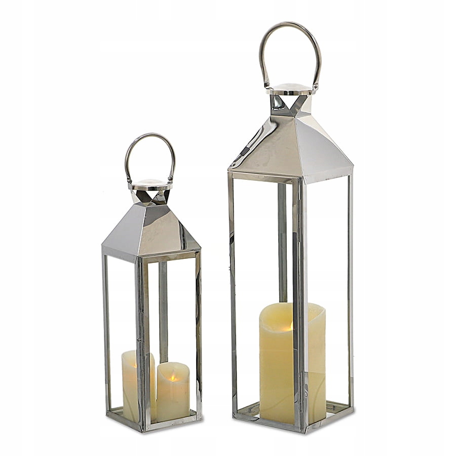 Metalowe lampiony srebrne chromowane - zestaw 2 szt.