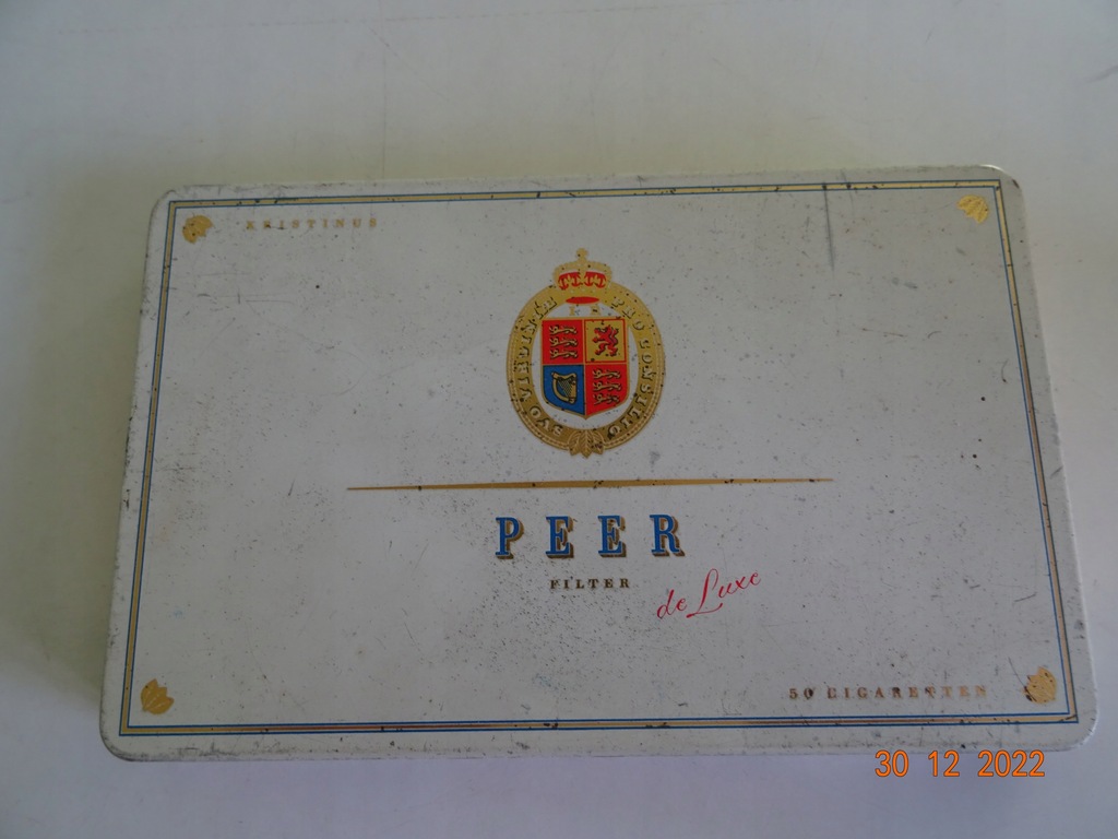 PUDEŁKO PO PAPIEROSACH PEEER DE LUXE 50 CIGARETEN KRISTINUS 17,5/11/2cm. UŻYWANY STAN JAK NA ZDJĘCIACH OTARCIA.