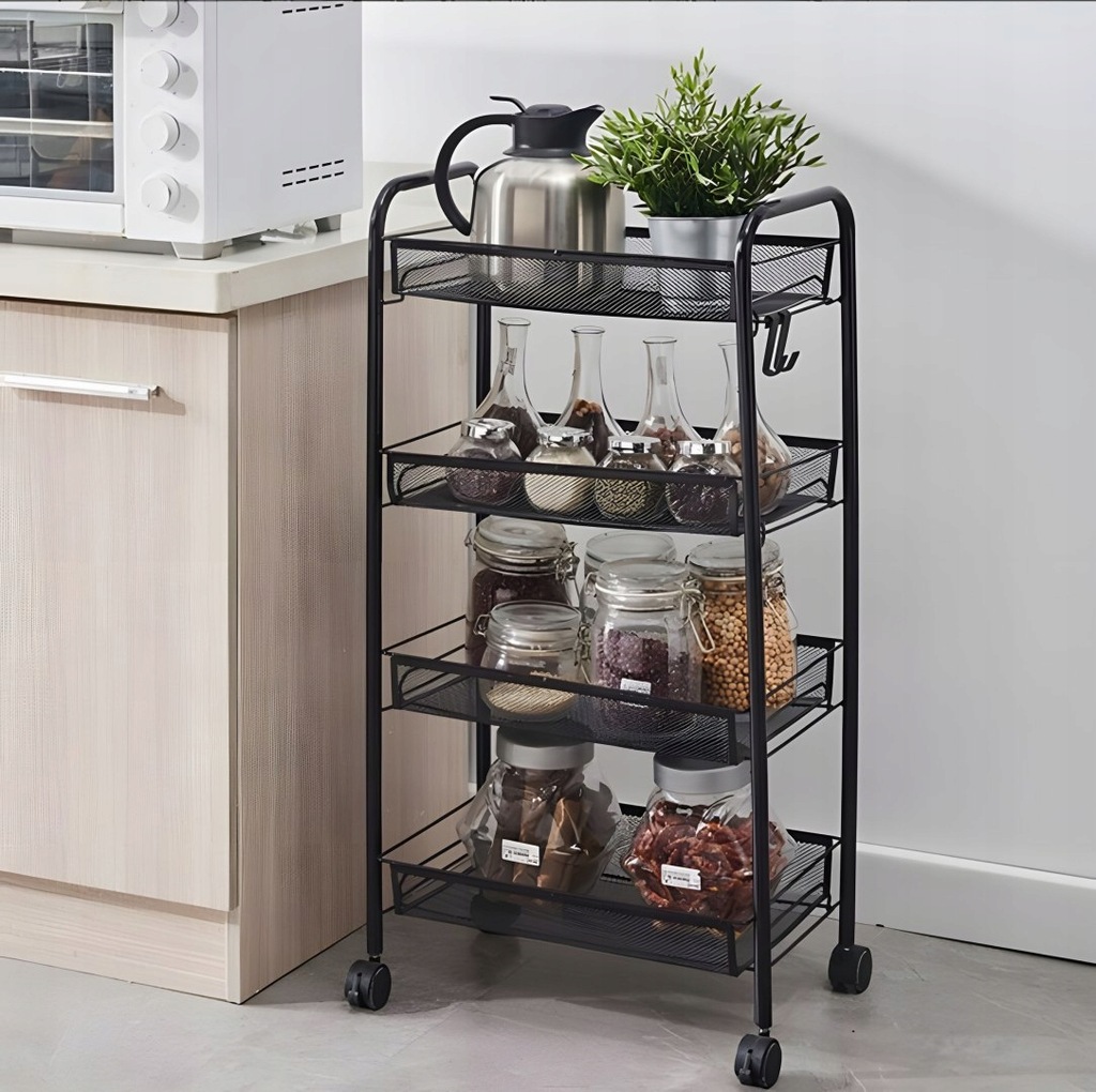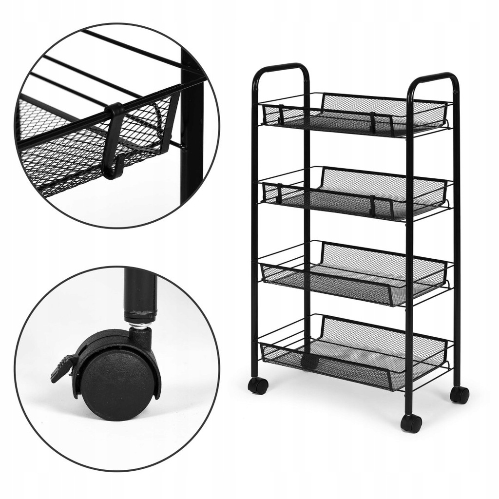 ✨ Metalowy regał mobliny łazienkowy z 4 półkami kółka czarny ModernHome ✨