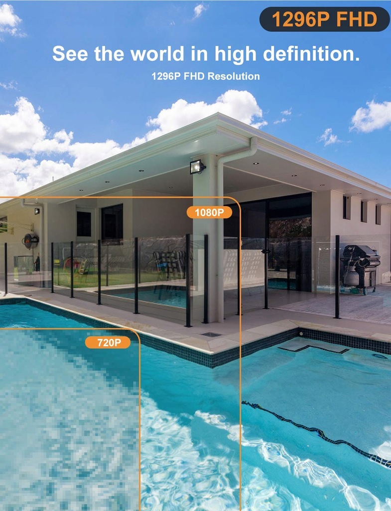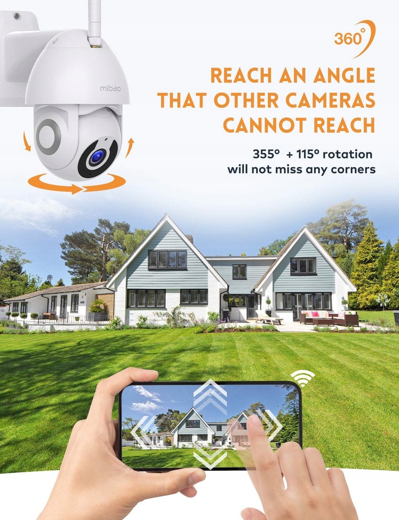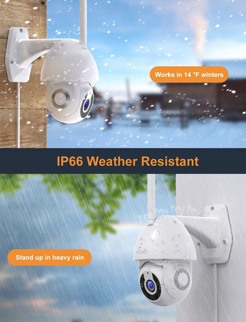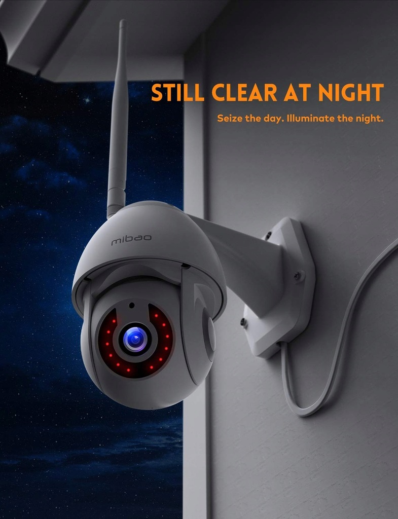 Technologia 1296P HD, kamera bezpieczeństwa zapewnia wyraźną jakość obrazu, aby zobaczyć sytuację w domu. Światła podczerwone w ciemności zapewniają wspaniałe wrażenia z widzenia w nocy. Zewnętrzna kamera monitoringu Mibao CCTV rejestruje wyraźne szczegóły i zapewnia bezpieczeństwo w dzień iw nocy.