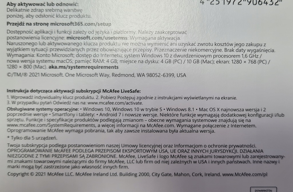 - 1x MICROSOFT OFFICE 365 PERSONAL - 1 ROK + McAFEE