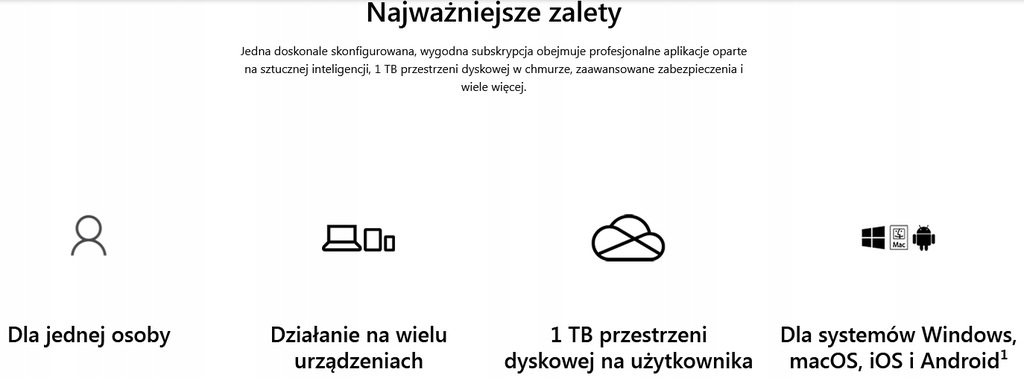 - 1 TB magazynu w chmurze dla każdej osoby