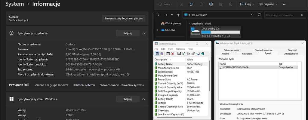 Pozostałe: laptop posiada oryginalny system Windows aktywowany przy użyciu licencji cyfrowej - oznacza to że bez problemu można przeinstalowywać system bądź zmieniać podzespoły a system będzie nadal aktywowany i w pełni funkcjonalny.