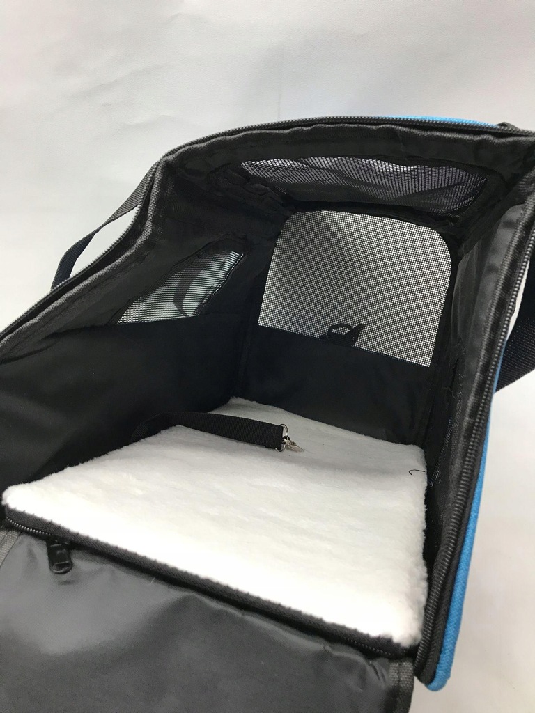 4. Wiele wejść: Dwa boczne wejścia i wejście górne są łatwo dostępne. Górne wejście jest idealne, aby Twój pupil mógł wystawić głowę, a Ty mógł sprawdzić, jak się czuje. Siatkowe wejście wentylacyjne nie tylko zapewnia odpowiedni przepływ powietrza, ale także umożliwia swobodne oglądanie krajobrazu.