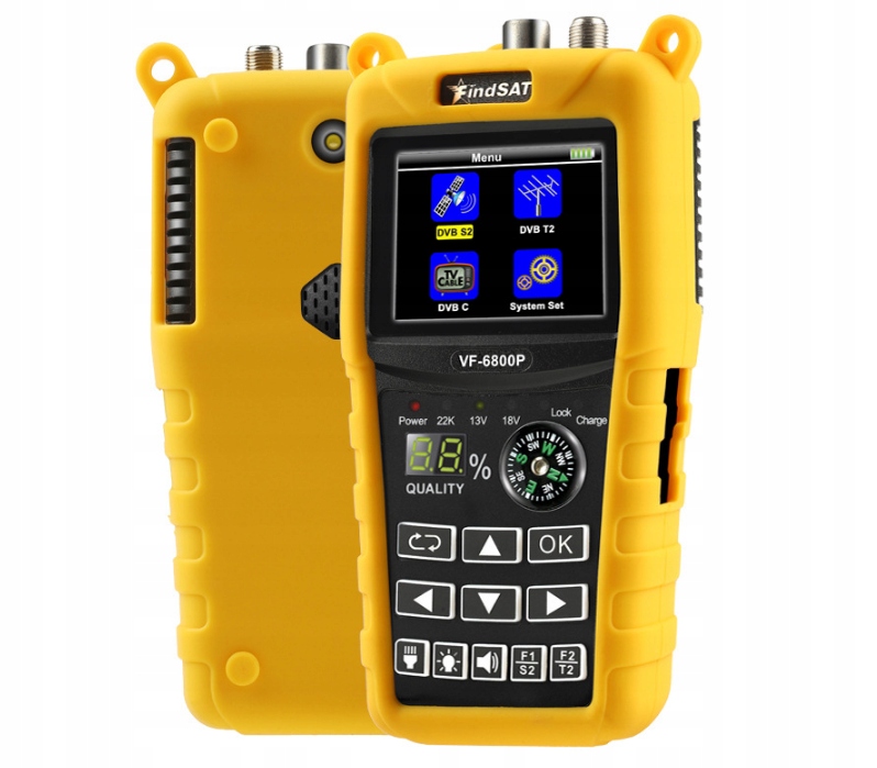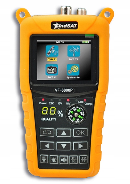 to bardzo popularny miernik typu Combo ze specjalnym, ochronnym silikonowym etui przeznaczony do pomiarów sygnałów telewizji satelitarnej, naziemnej i kablowej DVB-S/S2, DVB-T/T2, DVB-C/C2. Oprócz pomiarów sygnału telewizji satelitarnej DVB-S/S2 jest gotowy do ustawiania anten dla nowego standardu DVB-T2
