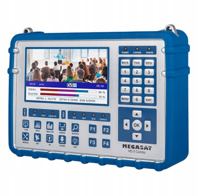 Z Miernikiem HD5 Combo można zmierzyć siłę wszystkich sygnałów. Zapewni dokładny pomiar telewizji satelitarnej, kablowej i naziemnej ( w tym DVB-T2 HD). Obudowa wykonana jest z wysokiej jakości aluminium. Menu jest łatwe w obsłudze i intuicyjne. Wszystkie funkcje pomiarowe są łatwo dostępne i przejrzyście przedstawione.