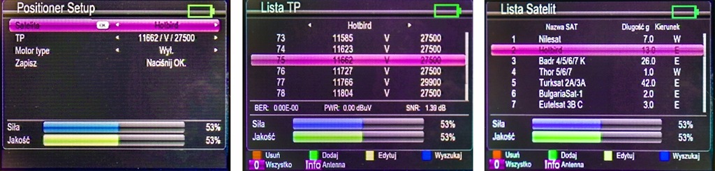 Zakres częstotliwości: 950 MHz ... 2150 MHz - DVB-S / DVB-S2 / DVB-S2X ; Poziom sygnału: -25 ... -65 dBm ;