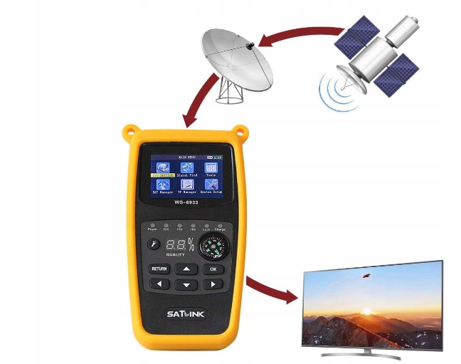 Satlink WS-6933 to zaawansowane urządzenie do wyszukiwania sygnału satelitarnego DVB-S/S2 HD, które umożliwia szybkie i precyzyjne ustawienie anteny satelitarnej. Wyposażone w oświetlany wyświetlacz LCD o przekątnej 2,1", ułatwia identyfikację i regulację sygnału satelitarnego, oferując jednocześnie funkcję latarki dla ułatwienia pracy w słabo oświetlonych miejscach..