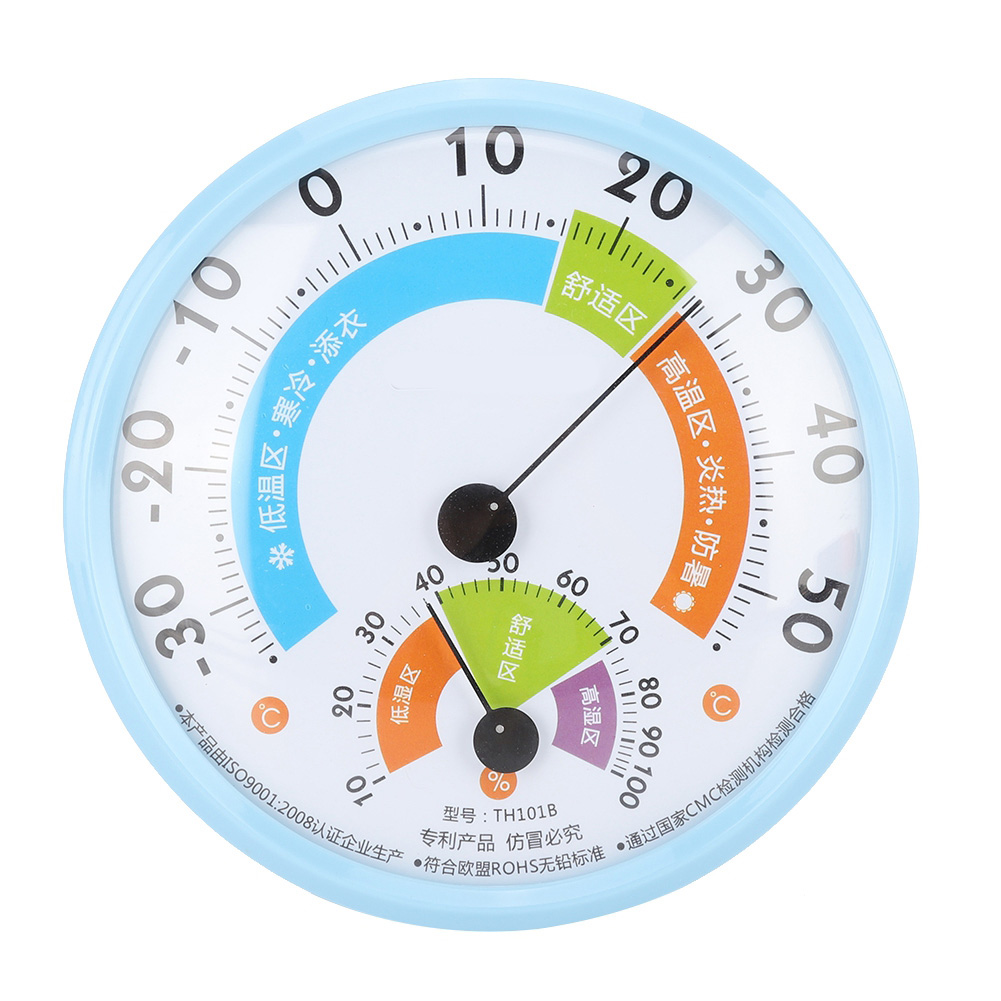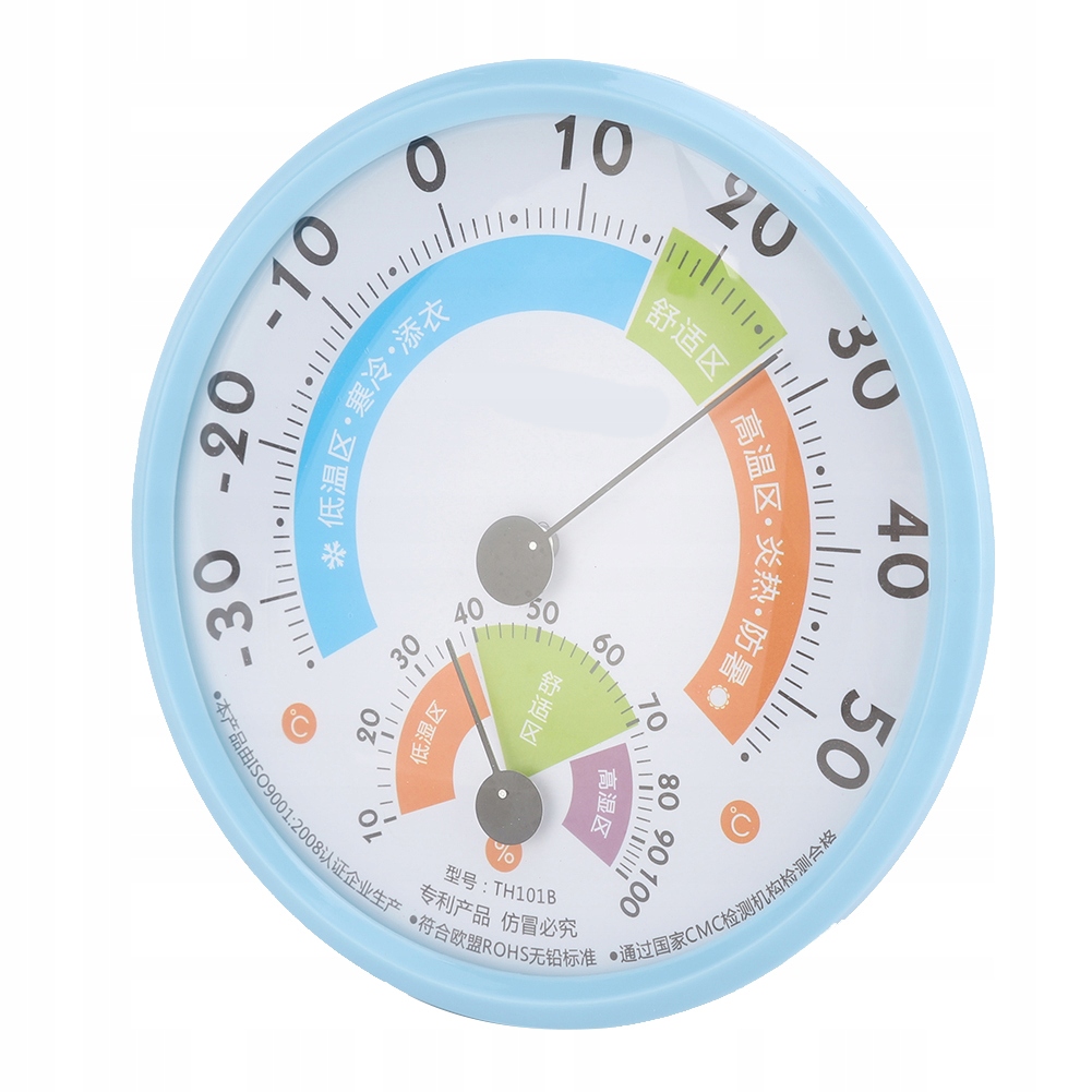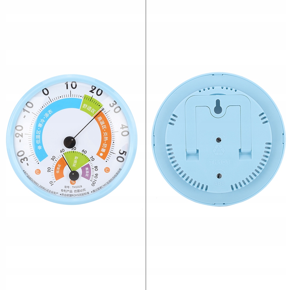 Termometr tarczowy do pomiaru temperatury i wilgotności powietrza, przenośny i trwały w użyciu.