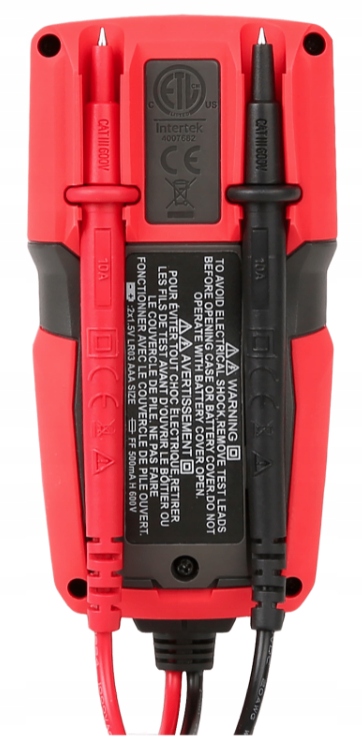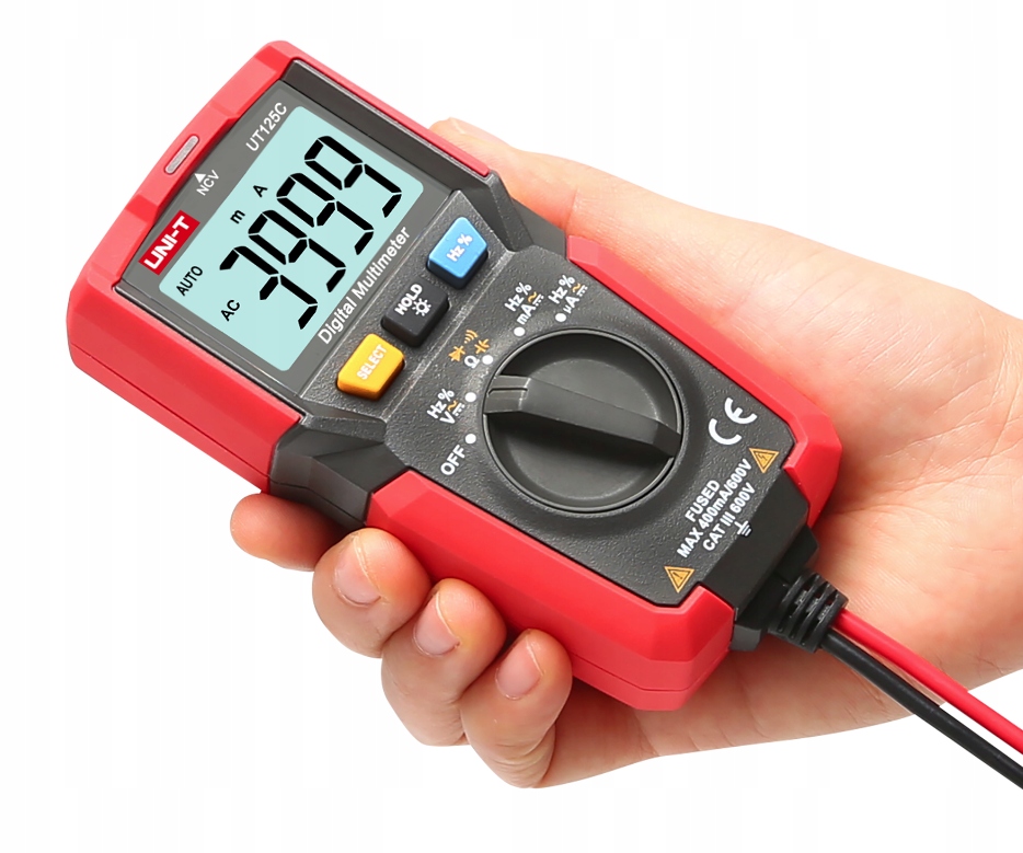 - Natężenie prądu stałego DC: 400 µA / 4 mA / 40 mA / 400 mA ±(1,8%+5)