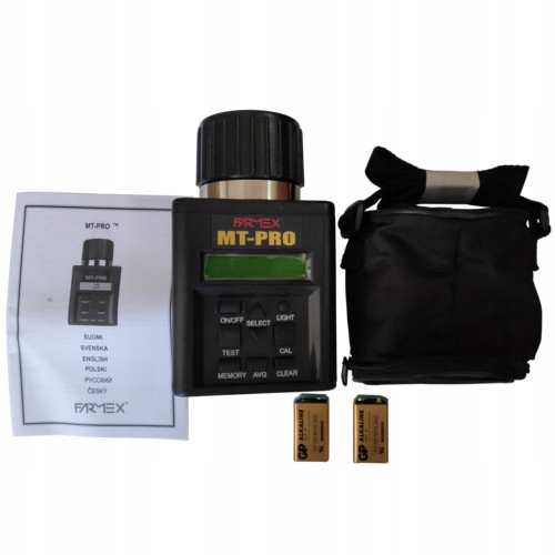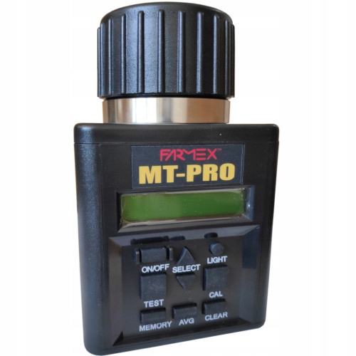 Miernik wilgotności ziarna Farmex MT Pro to wysokiej jakości wilgotnościomierz do ziarna. Jest to sprawdzone urządzenie cieszące się bardzo dobrą opinią użytkowników na polskim rynku. Nasz wilgotnościomierz do ziarna jest jednym z nielicznych urządzeń w Polsce, które daje pomiar zbliżony do pomiarów dokonywanych na punktach skupu. Dokonanie pomiaru wilgotności ziarna w okresie żniw, pozwala wybrać najlepszy moment do koszenia i uzyskać najlepszą cenę zbytu. Menu urządzenia dostępne jest w języku polskim.