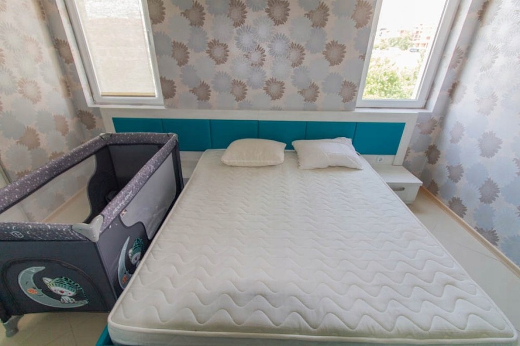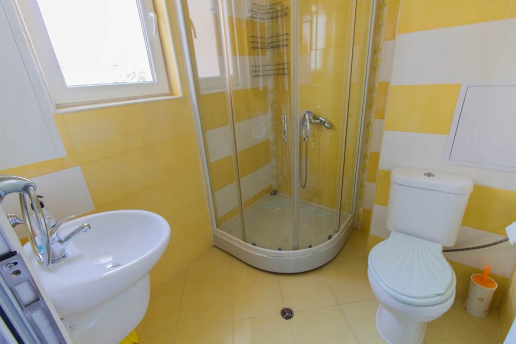Mieszkanie ma powierzchnię 52 . i składa się z pokoju z kuchnią, jadalnią i częścią sypialną, balkonu z widokiem na MORZE, jednej łazienki z kabiną prysznicową, toaletą i umywalką.