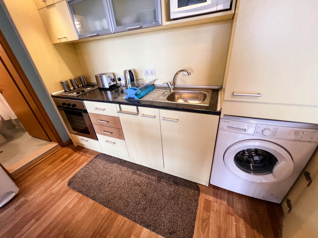 Apartament ma powierzchnię 52,63 m2 + 2,55% idealnych części wspólnych budynku i składa się z przedpokoju, dużego salonu z kuchnią i jadalnią, 1 sypialni, dużego balkonu z widokiem na basen oraz łazienki z wanną, toaletą i umywalką. Apartament jest w doskonałym stanie i jest na sprzedaż umeblowany i wyposażony, jak na zdjęciach. Idealny do stałego zamieszkania, na wakacje lub do wynajęcia.