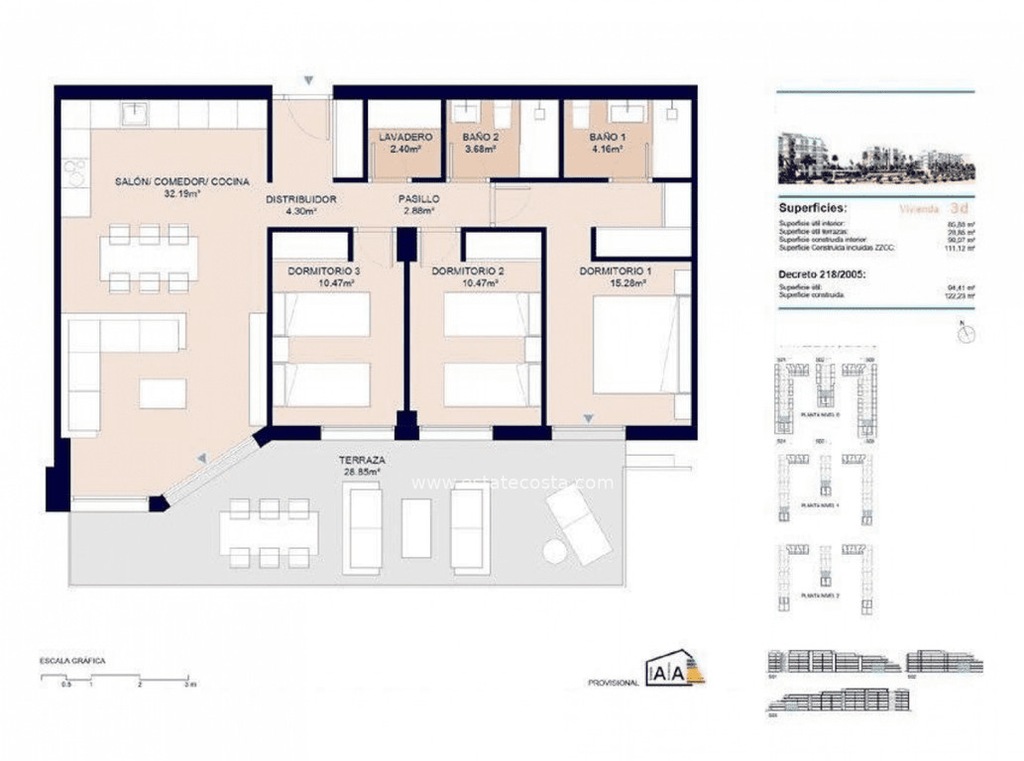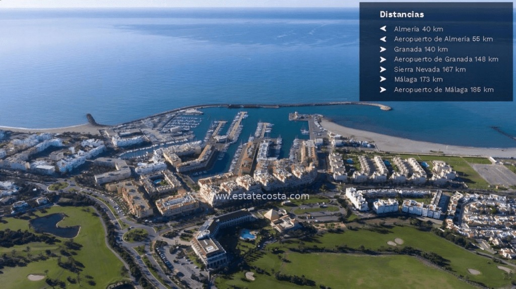 Nowo wybudowany kompleks mieszkalny z imponującymi panoramicznymi widokami na Morze Śródziemne znajduje się obok promenady, która biegnie wzdłuż plaży Almerimar. Niezwykłe tereny ogólnodostępne z konsjerżem i ochroną, baseny o różnych rozmiarach, solarium, siłownia, garaż, pomieszczenie gospodarcze i rozległe ogrody, z których można usłyszeć szum fal morskich.
