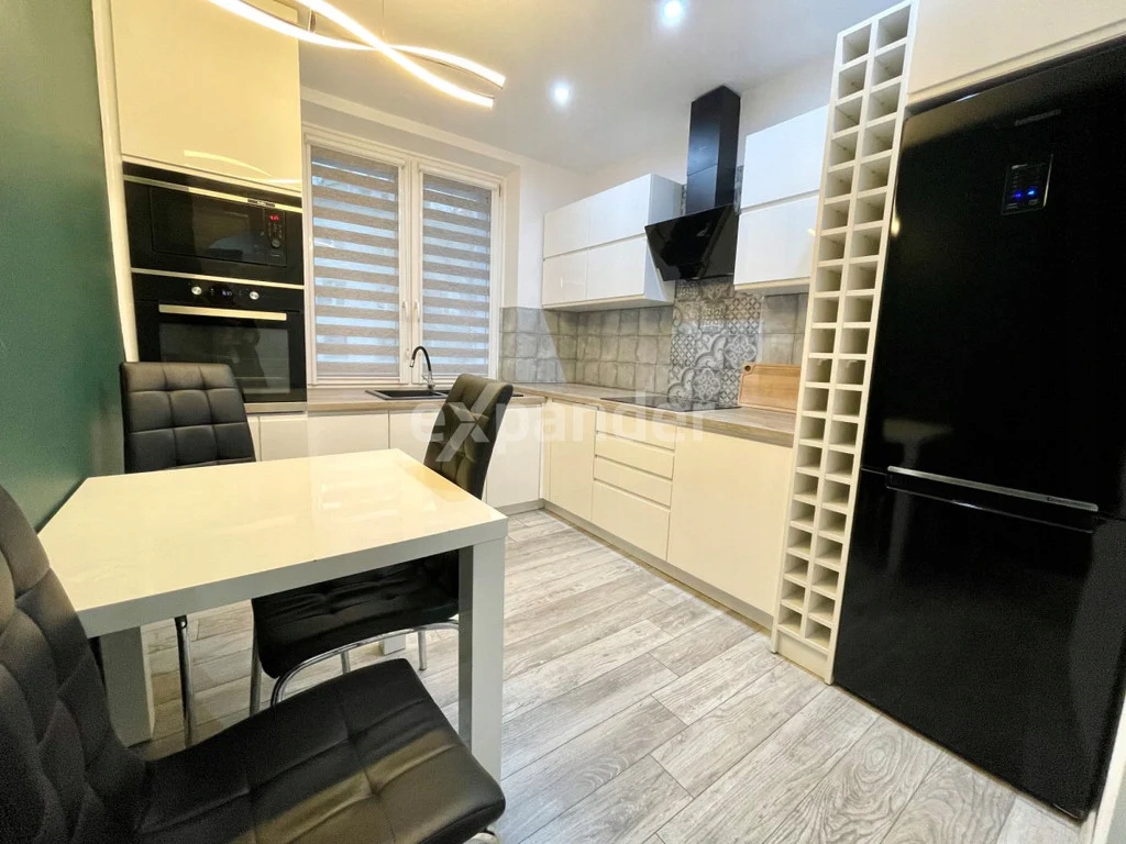 Kuchnia w zabudowie, podwieszane sufity, położone gładzie, podłoga pokryta panelami, wyremontowana łazienka.