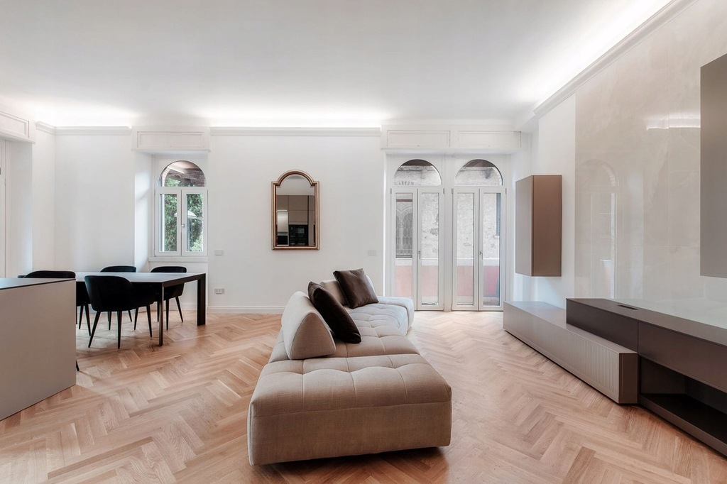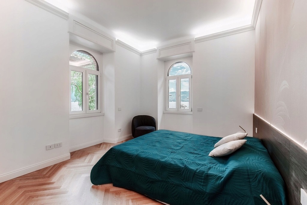 Nieruchomość o powierzchni około 144 m2 znajduje się na pierwszym piętrze i cieszy się niezrównaną pozycją bezpośrednio z widokiem na jezioro, zaledwie kilka kroków od głównego placu. Mieszkanie wyróżnia się doskonałą równowagą między urokiem szlachetnej architektury a współczesnym komfortem, oferując przestronne, jasne i harmonijnie rozmieszczone pokoje.