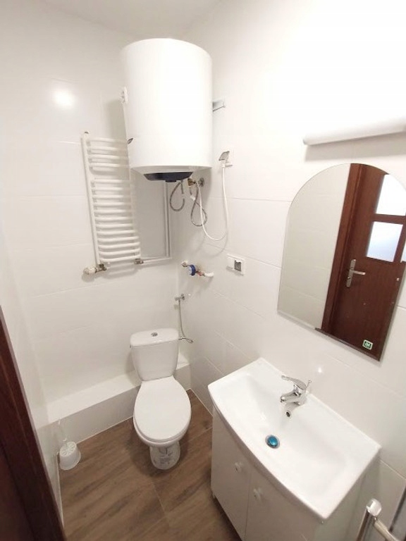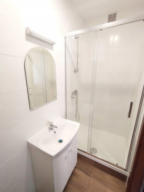 *Łazienka: lustro, szafki, umywalka, prysznic, bojler