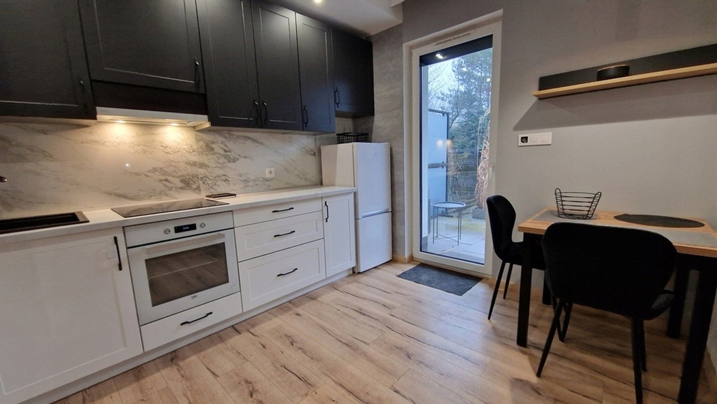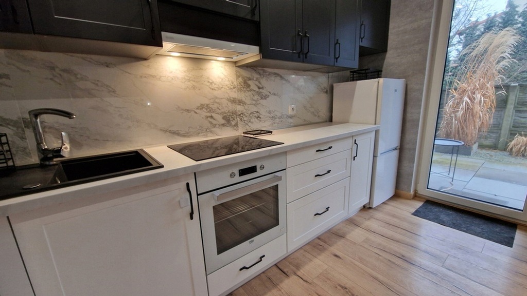 - ANEKS KUCHENNY: meble w zabudowie ze sprzętem AGD, lodówko-zamrażarka, płyta indukcyjna, piekarnik, stół z krzesłami