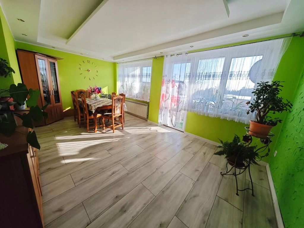Z salonu wyjście na dużą loggie. Dodatkowo piwnica (15m2), garaż i ogródek.