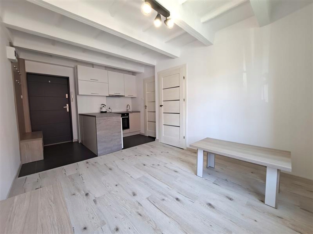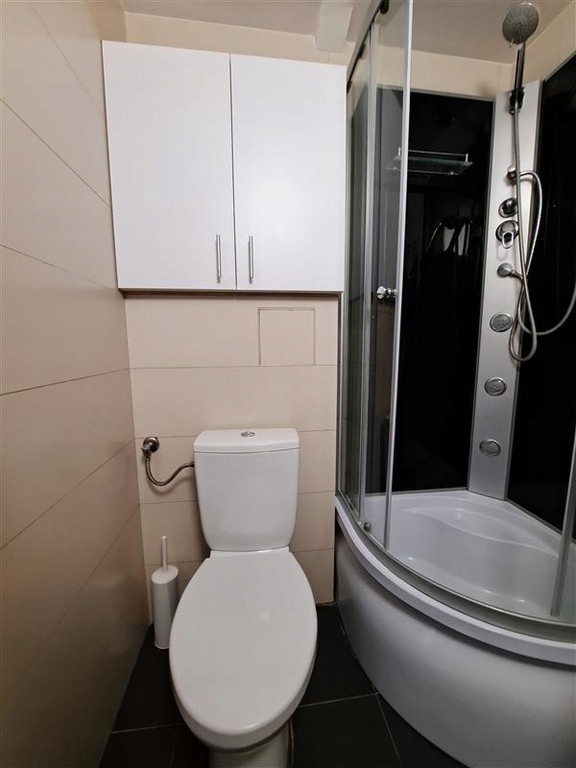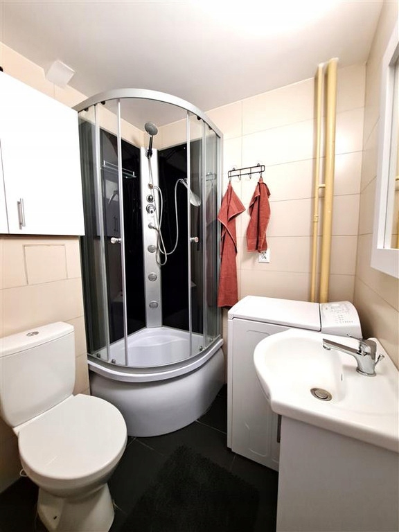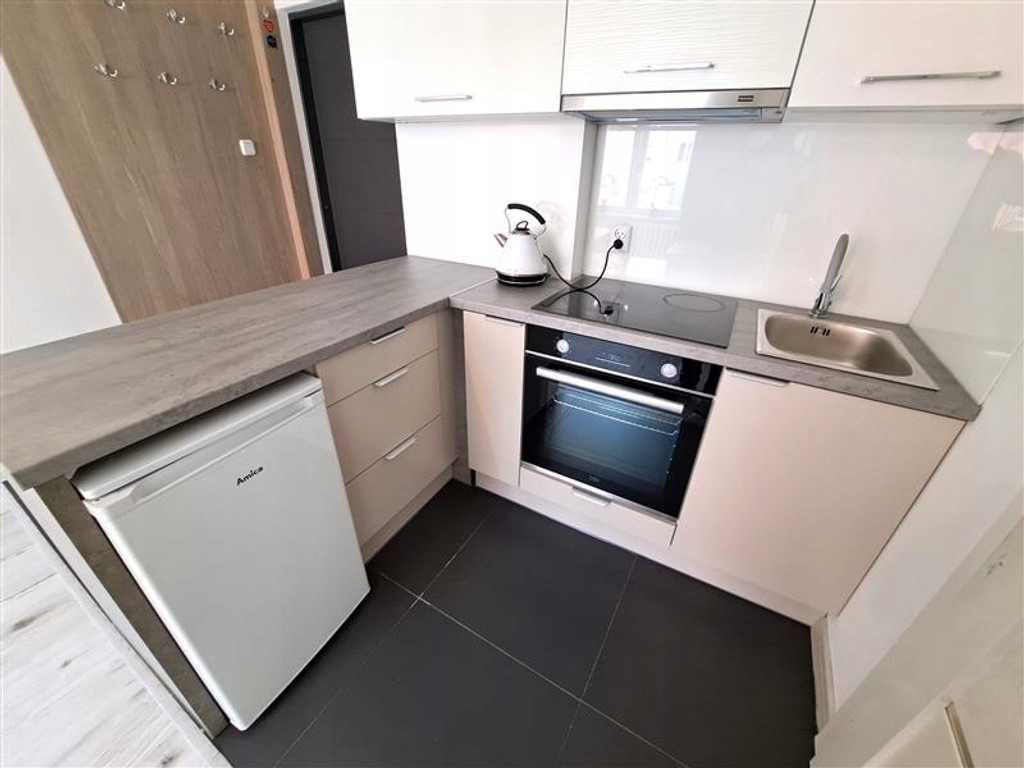 Mieszkanie o pow. 30m2, położone jest w czteropiętrowym bloku mieszkalnym na II piętrze. Składa się z pokoju dziennego z aneksem kuchennym ( w całości umeblowany i wyposażony), sypialni i łazienki z prysznicem wyposażonej w pralkę. W pokoju dziennym jest tylko stolik i komoda, w sypialni zaś tylko zabudowa szafy. Istnieje możliwość umeblowania mieszkania.