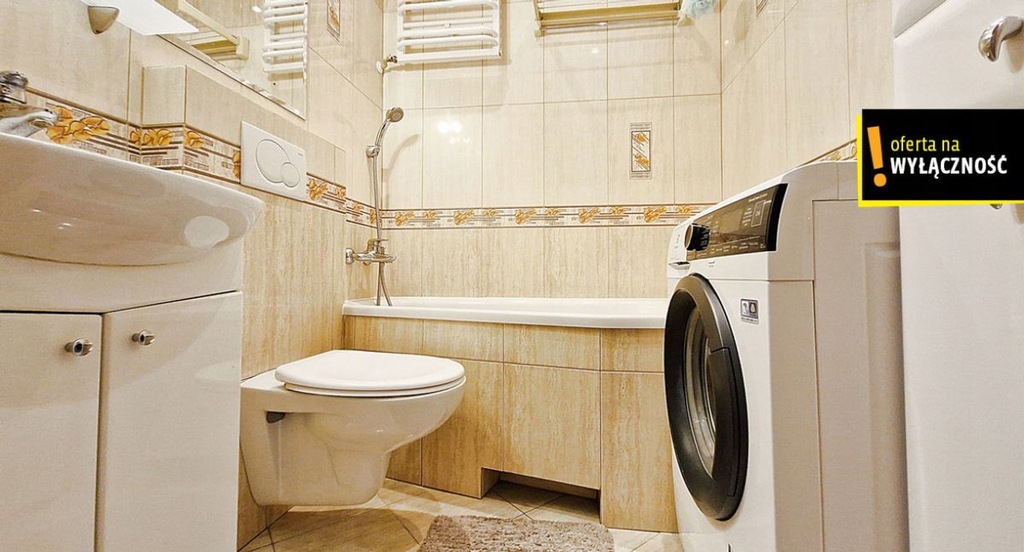 - łazienka z wanną, W.C. i pralką