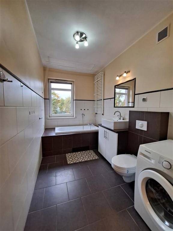 Propozycja wynajmu 2 pokojowego mieszkania w Elblągu na ul. Moniuszki. Przestronne, narożne mieszkanie, położone na pierwszym piętrze o powierzchni 60m2 składa się z sypialni, łazienki z WC, kuchni otwartej na salon oraz korytarza. Wyjście na balkon z obu pokoi. Mieszkanie umeblowane. Do mieszkania przynależy miejsce parkingowe w hali garażowej. Blok w którym mieści się mieszkanie znajduję się bezpośredni przy parku Dolinka co jest niewątpliwym atutem nieruchomości.