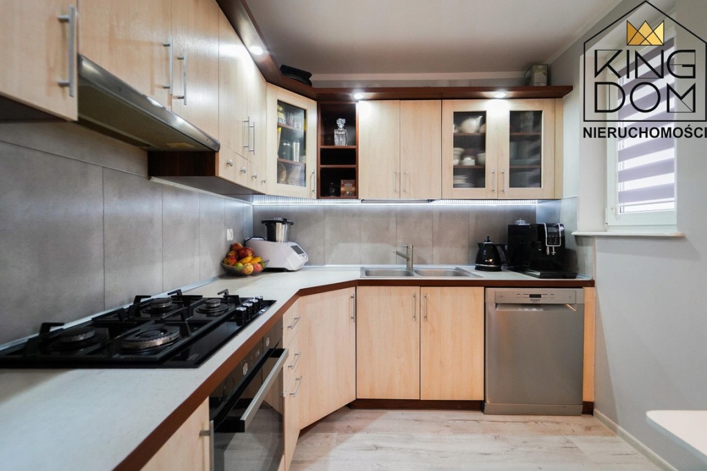 - osobna, jasna kuchnia w zabudowie ze sprzętami AGD (lodówka, piekarnik, płyta gazowa, zmywarka, okap),