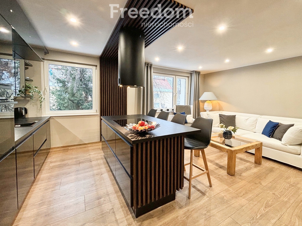 Apartament przeszedł kompletny remont w 2023 roku, jest w pełni wykończony z użyciem wysokiej klasy materiałów. W salonie z aneksem znajduje się piękna, nowoczesna kuchnia z wyspą, telewizor oraz duża, jasna kanapa zapewniająca komfort po długim dniu pracy. Kuchnia jest wyposażona w lodówkę i zmywarkę, pralkę oraz płytę elektryczną. W sypialni przytulnej sypialni rodziców znajduje się łóżko z dwustronnym materacem i jasna komoda. W drugim pokoju z łatwością urządzisz pokój dziecka lub swoje własne domowe biuro. W łazience znajduje się duży prysznic, wc i zautomatyzowany piecyk gazowy sterowany aplikacją. Warto wspomnieć o ogrzewanej podłodze w łazience! Całe wyposażenie oraz sprzęty w mieszkaniu są nowe.