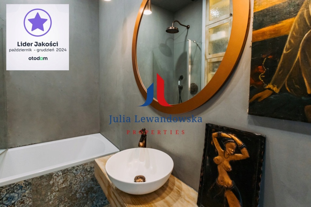 Łazienka to kolejny wyjątkowy punkt tego apartamentu - stylowa i urokliwa, została wyposażona w wygodną wannę, która pozwoli Ci na odprężenie po długim dniu. Jasne kolory oraz dobrze dobrane oświetlenie sprawiają, że przestrzeń jest przytulna i zachęca do relaksu. Pralkosuszarka dyskretnie wkomponowana w zabudowę zapewnia praktyczne rozwiązanie do codziennego użytkowania.