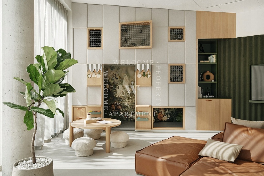 Apartament składa się z salonu z aneksem kuchennym, który dzięki dużym przeszkleniom jest jasny i przytulny. To miejsce, które sprzyja wspólnemu spędzaniu czasu, relaksowi i odpoczynkowi. Dwie sypialnie można dostosować do własnych potrzeb - jako sypialnię główną, pokój dziecięcy czy wygodny gabinet. Łazienka i osobna toaleta zapewniają wygodę na co dzień.