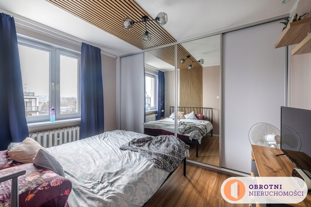* Sypialnia: wyremontowana, z dużą, przestronną szafą w zabudowie z lustrami odbijającymi światło i powiększającymi pomieszczenie.