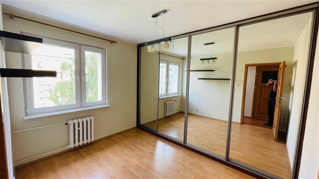Z większego pokoju wyjście na balkon typu "francuskiego". W sypialni zabudowa typu Komandor.