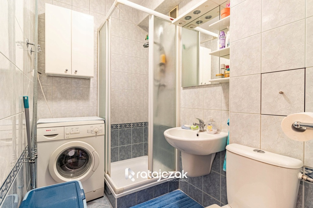 - łazienki z kabiną prysznicową, umywalką, toaletą i pralką