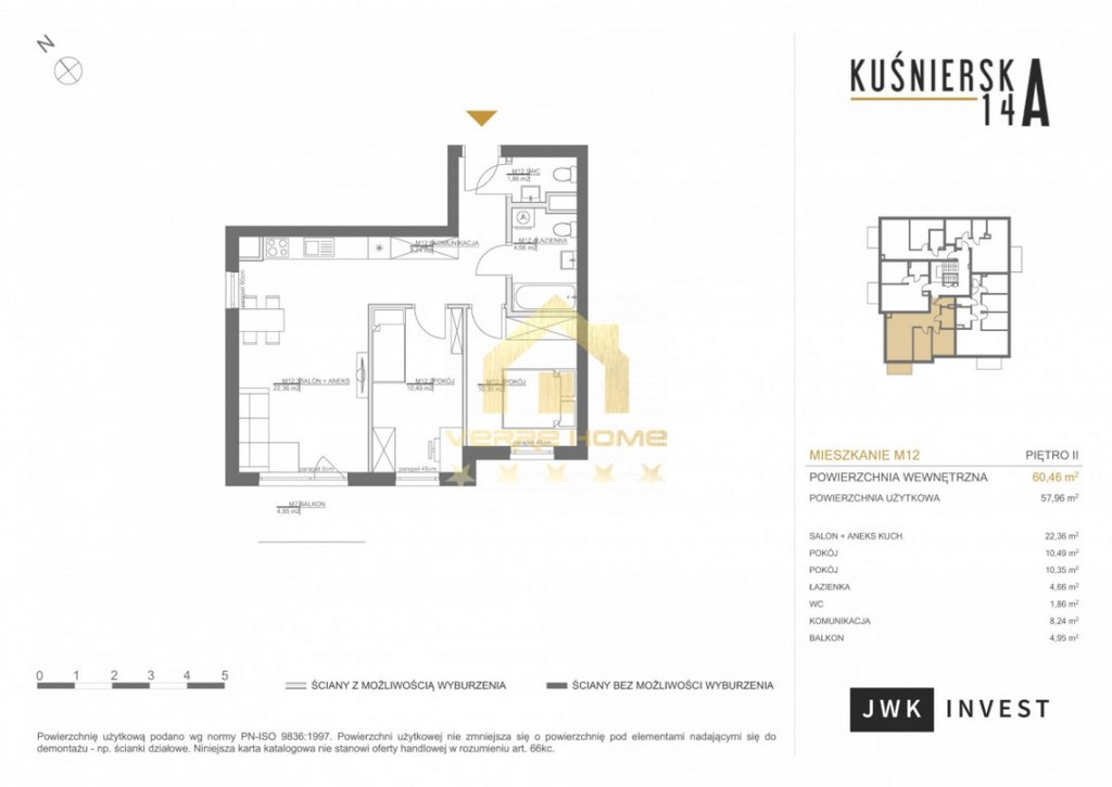 Apartament M12 o pow. użytkowej 57,96 m2 składa się: