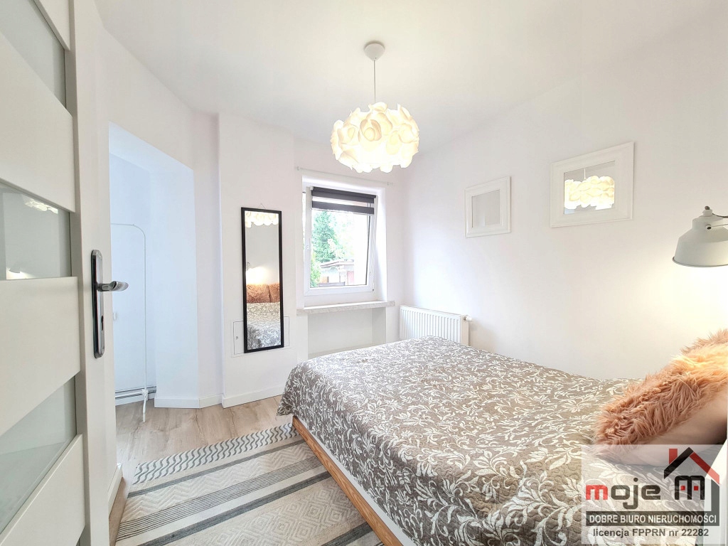 Sośnica, ulica Reja-polecamy bardzo atrakcyjne, kompleksowo wyremontowane mieszkanie o pow. ok. 31,20 m2, usytuowane na parterze ocieplonego, bardzo zadbanego budynku. Lokal gustownie zaaranżowany i wyposażony. Na jego powierzchnię składają się 2 pokoje, kuchnia, przedpokój, łazienka z wc oraz pomieszczenie garderoby. W mieszkaniu znajduje się pełne wyposażenie, w tym m.in. w pokoju dziennym zestaw mebli, komoda, stół z krzesłami, stolik kawowy, sofa rozkładana, szafa, w sypialni podwójne łóżko sypialniane, lustro, pomieszczenie garderoby z półkami oraz wieszakiem na odzież, w kuchni zabudowa meblowa kuchenna, lodówka, płyta indukcyjna, piekarnik, pochłaniacz, pralka, a w łazience z wc wszystkie sanitariaty. W mieszkaniu także cały sprzęt codziennego użytku.Całe wyposażenie w bardzo dobrym stanie. Do dyspozycji Najemcy spora piwnica.
