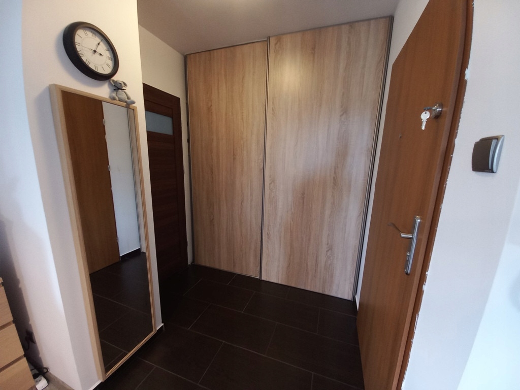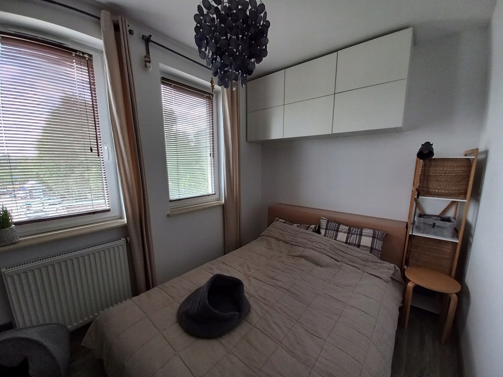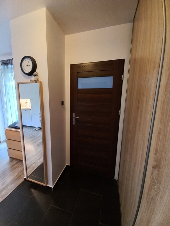 Lokalizacja zapewnia łatwy dostęp do komunikacji miejskiej, w pobliżu sklepy, punkty usługowe, przychodnia i apteka. Powierzchnia mieszkania wynosi 35,4 m2 - składa się na nią pokój z aneksem kuchennym w zabudowie, wygodna sypialnia, przestronna łazienka z wc oraz przedpokój. Dodatkowo do mieszkania przynależny jest duży 11 metrowy balkon oraz miejsce parkingowe w garażu należącym do mieszkańców bloku. Podłogi w pokojach wyłożone są wysokiej klasy panelami, natomiast w przedpokoju i łazience terakotą i glazurą. Wszystkie meble i sprzęty widoczne na zdjęciach pozostają do dyspozycji najemcy. Wynajem wyłącznie z miejscem garażowym.