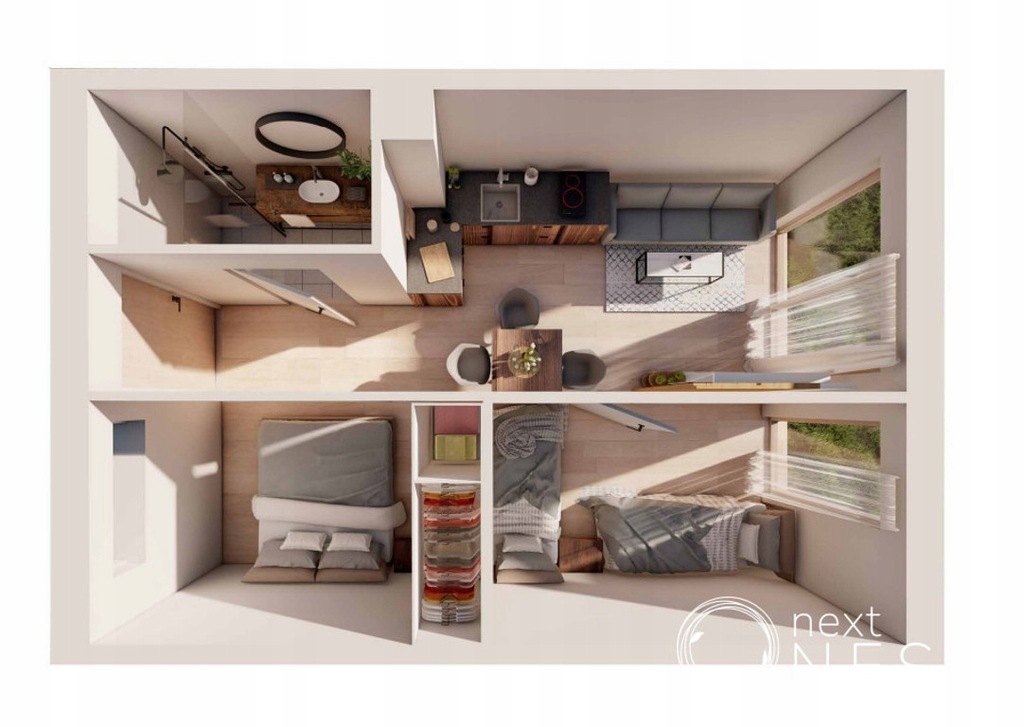 Oferowany lokal o pow 31,49m2, znajduje się na parterze i ma dostęp do prywatnego tarasu. Składa się z salonu z aneksem kuchennym, łazienki i sypialni.