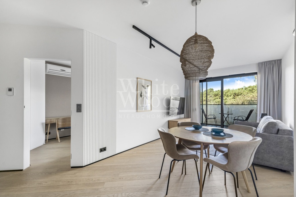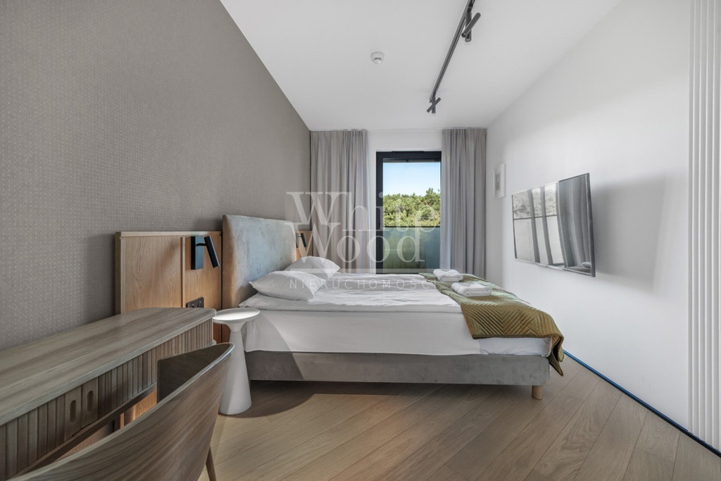 Lokalizacja nieruchomości jest absolutnie wyjątkowa; budynek w którym znajduje się apartament położony jest bezpośrednio przy nadmorskim lesie sosnowym, od budynku prowadzi ścieżka na plażę (przez furtkę na kod) 150 m od strony otwartego morza. Piaszczysta czysta plaża ciągnąca się kilometrami aż do Helu staje się najbliższym miejscem odpoczynku.
