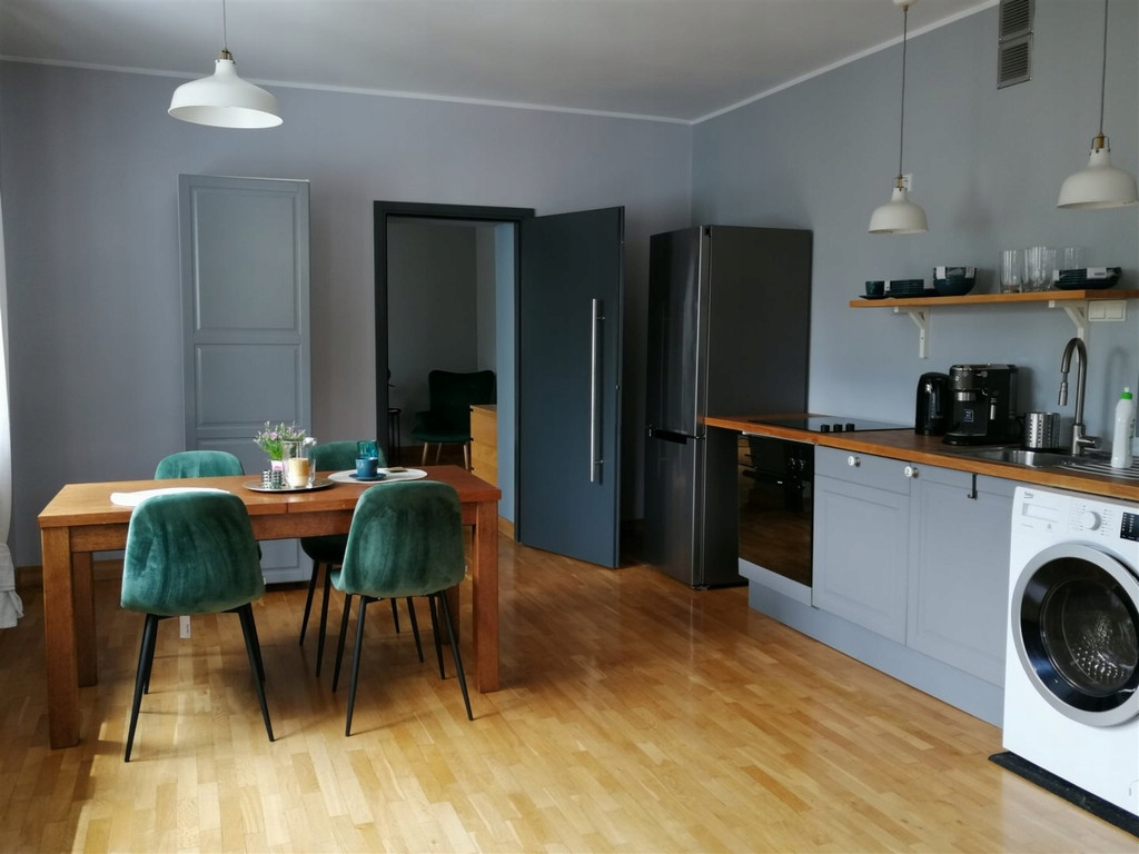 Apartament jest przestronny, słoneczny, w pełni umeblowany w wysokim standardzie.