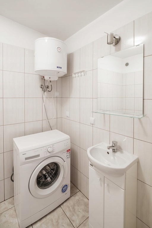 *Łazienka: kabina prysznicowa, bojler elektryczny, umywalka z szafką, pralka