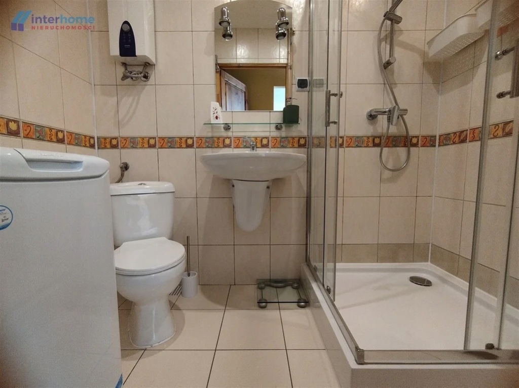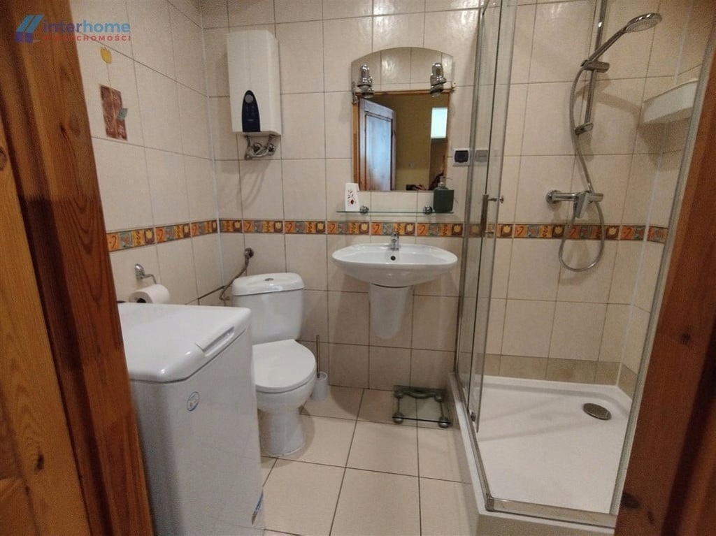 Łazienka w glazurze prysznic, szafka, szafka-słupek, pralka, elektryczny podgrzewacz wody