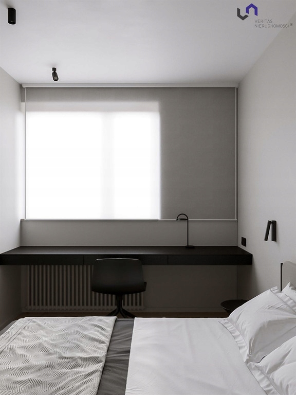 - przestronnej sypialni z szafą zabudowaną oraz miejscem do pracy