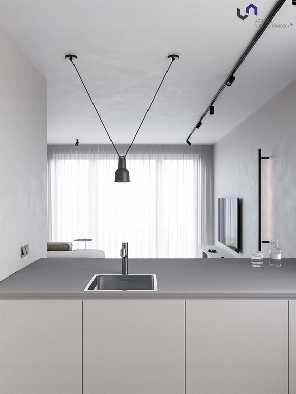 - kuchni z dużym blatem łączącym się z Salonem(lodówka, zamrażarka, zmywarka, płyta indukcyjna)