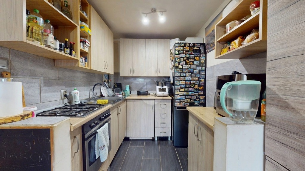 Mieszkanie jest w stanie dobrym. Na przedpokoju, w kuchni oraz w łazience płytki, w pokojach panele. Na ścianach wykonano gładzie. Wszystkie instalacje wodno-kanalizacyjne, elektryczne oraz hydrauliczne zostały wymienione. Ogrzewanie oraz ciepła woda z sieci miejskiej.