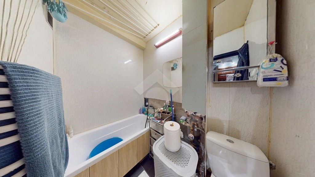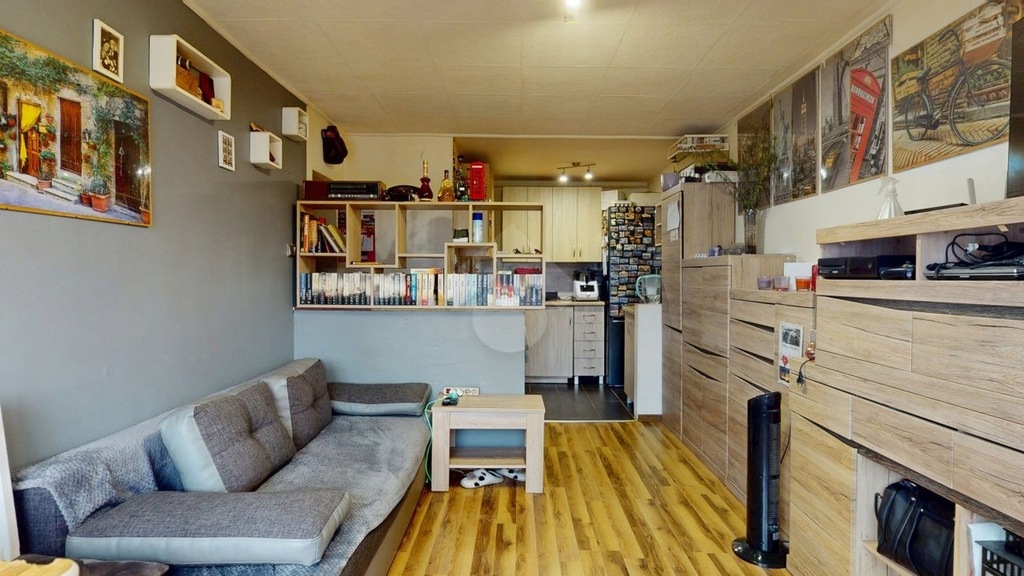 W salonie znajduje się sofa, stół z dwoma krzesłami, półka na książki lub inne rzeczy, meblościanka. Kuchnia wyposażona. W sypialni łóżko, szafa, komoda. Łazienka do delikatnego remontu, posiada wannę oraz WC. W przedpokoju miejsce na buty i płaszcze.