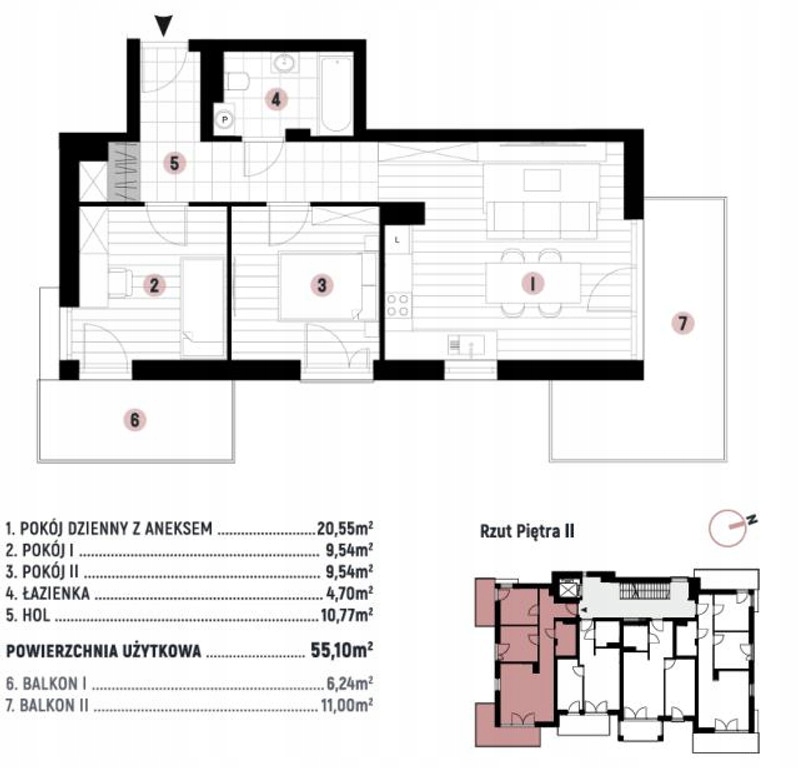 + 2 BALKONY (6,24m2 i 11 m2)