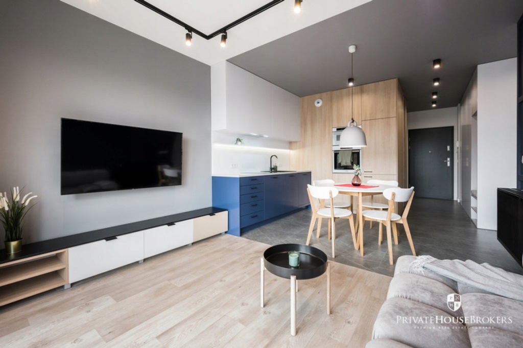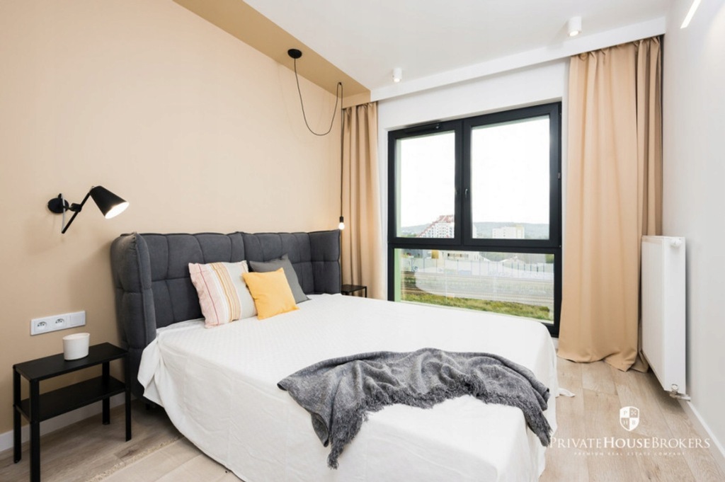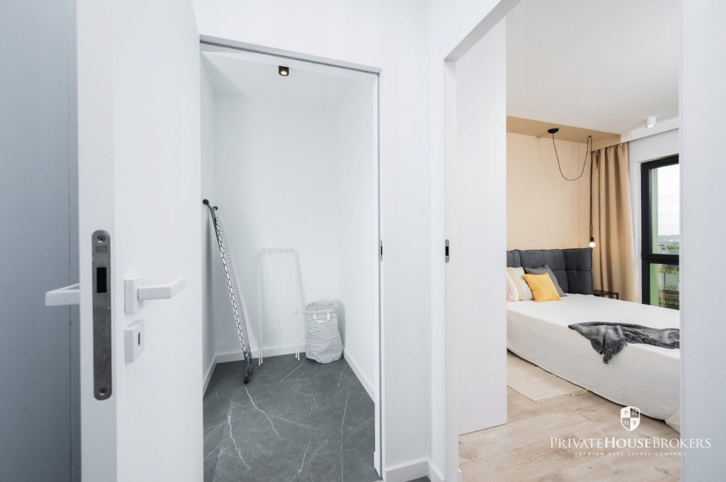 It is located on the 4th and last floor of a new building with a lift. The apartment has an area of about 62 m2 and we have 2 bedrooms, a living room with a kitchenette, a bathroom, a dressing room / utility room and a spacious corridor with a lot of built-in wardrobes.