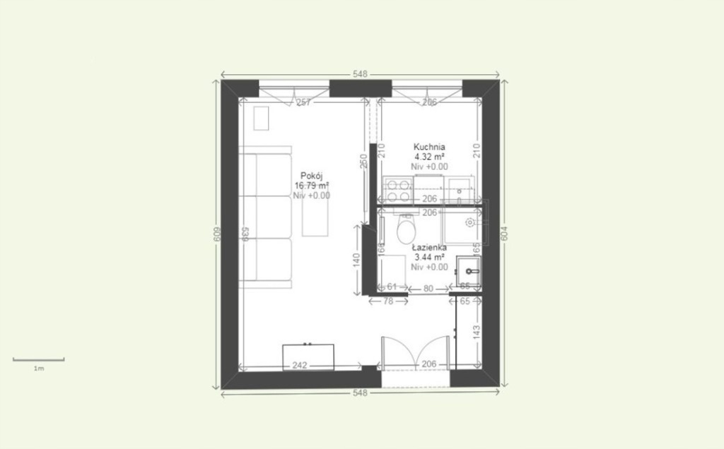 - widnego i osobnego aneksu kuchennego - (4,32 m2)