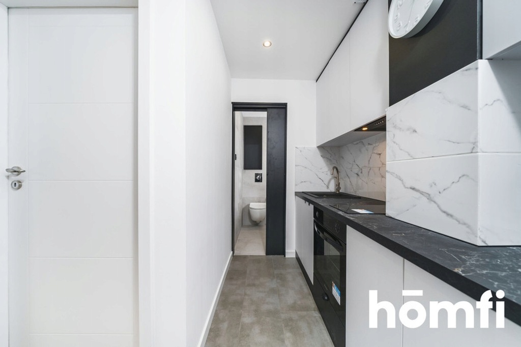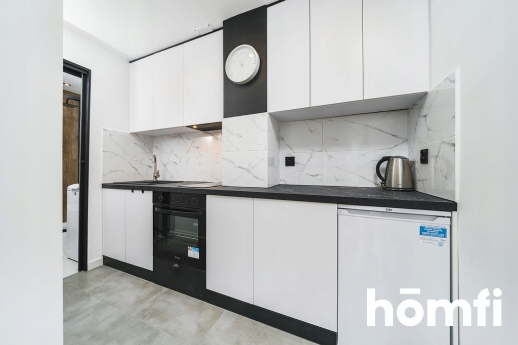 W mieszkaniu między innymi: pralka, okap, piekarnik, płyta grzewcza, mała lodówka z zamrażarką, umeblowanie w zabudowie, rozkładana kanapa.